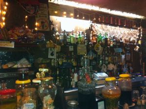 Sí, no engaña, pero sorprende y agrada. Es un bar para turistas ya asimilados, un bar amable, gracioso y de precio ajustado, con el humor que se le demanda. Un cartel a media barra te da alguna pista: “Engañamos a turistas y borrachos”. Así se vive. Además, si Santiago está flamenco, quizá te ponga un plato de migas con tu cerveza o tu copa de vino mientras te comenta el último partido del Barça. Si no quieres hablar, bebe y disfruta de una decoración diferente en un ambiente extraño, u original según gustos, pero siempre comentable. Según dicen, los elementos decorativos que llenan el local son presentes de clientes. A caballo regalado…