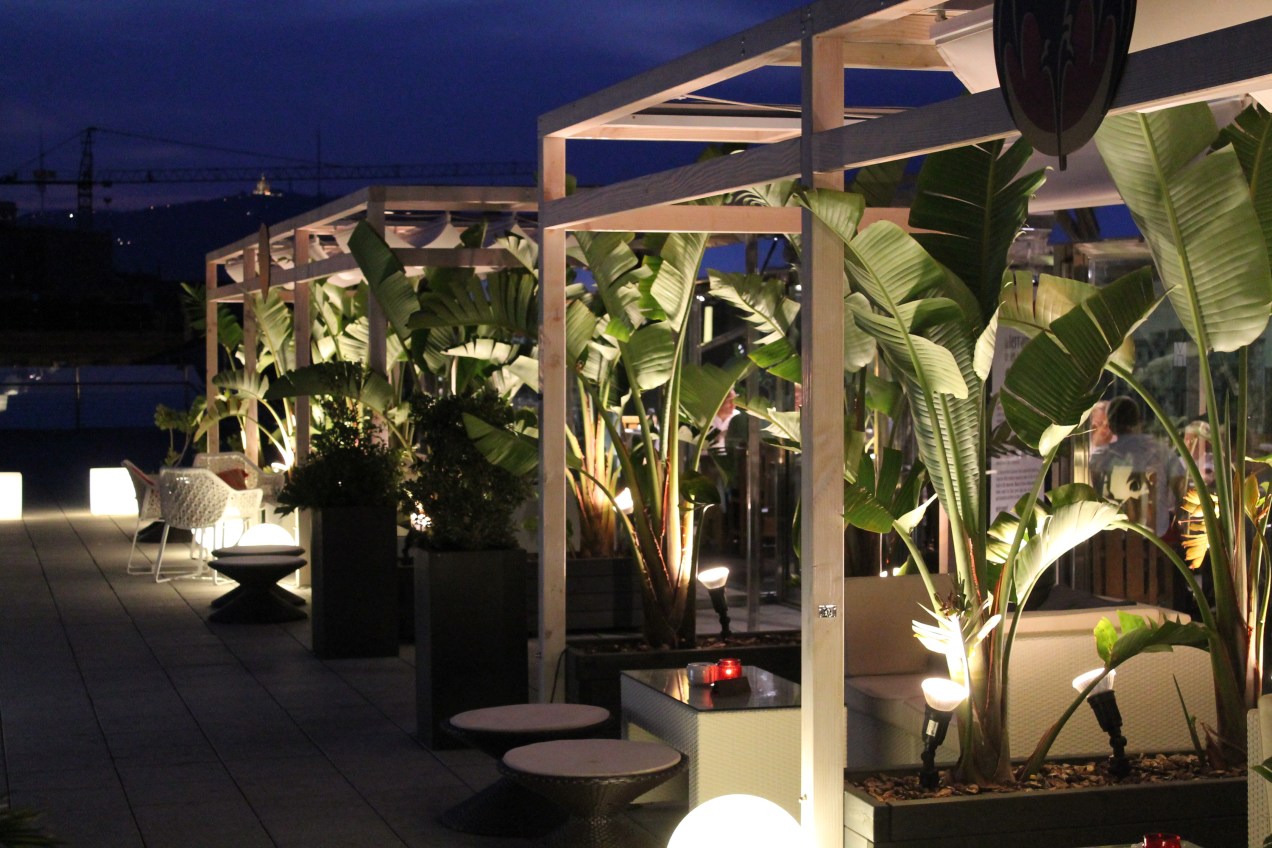 Flores y luz blanca en la terraza