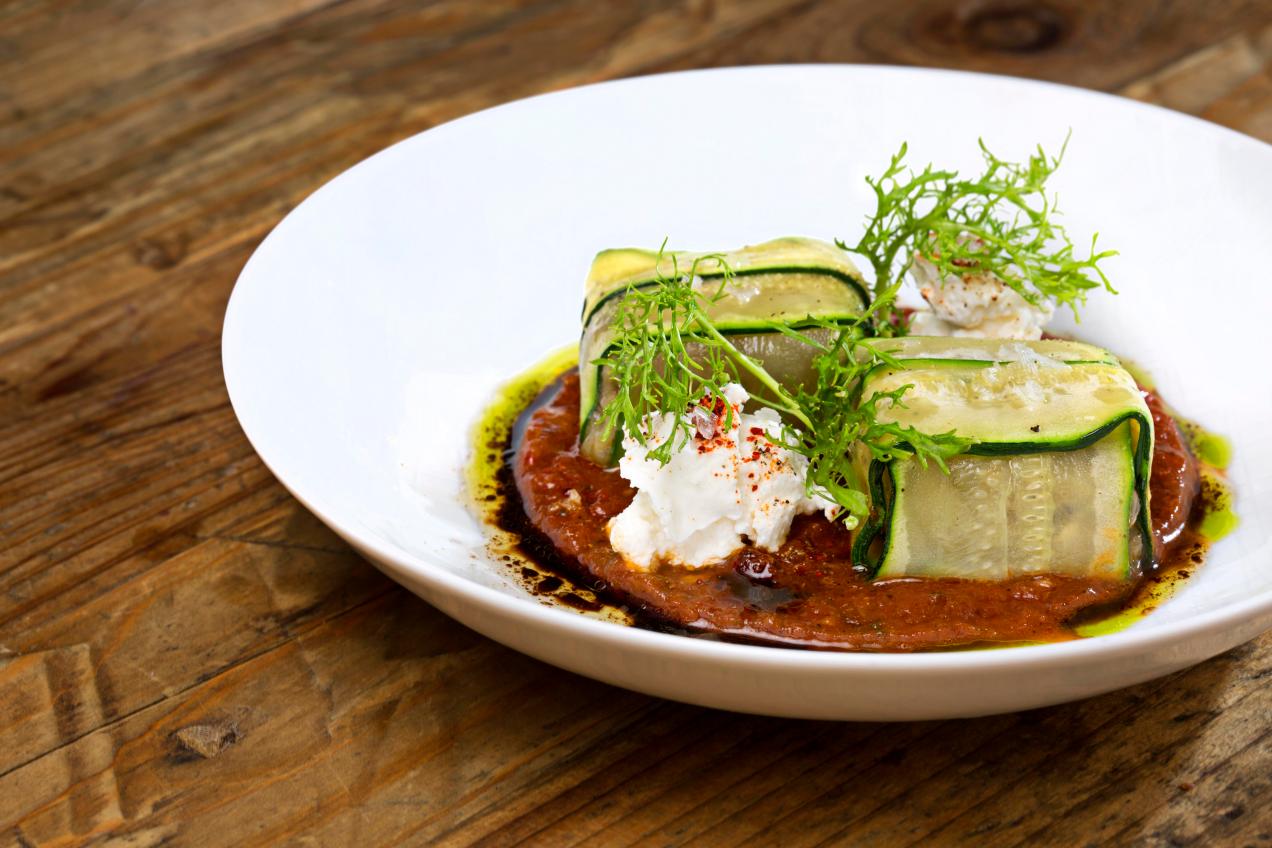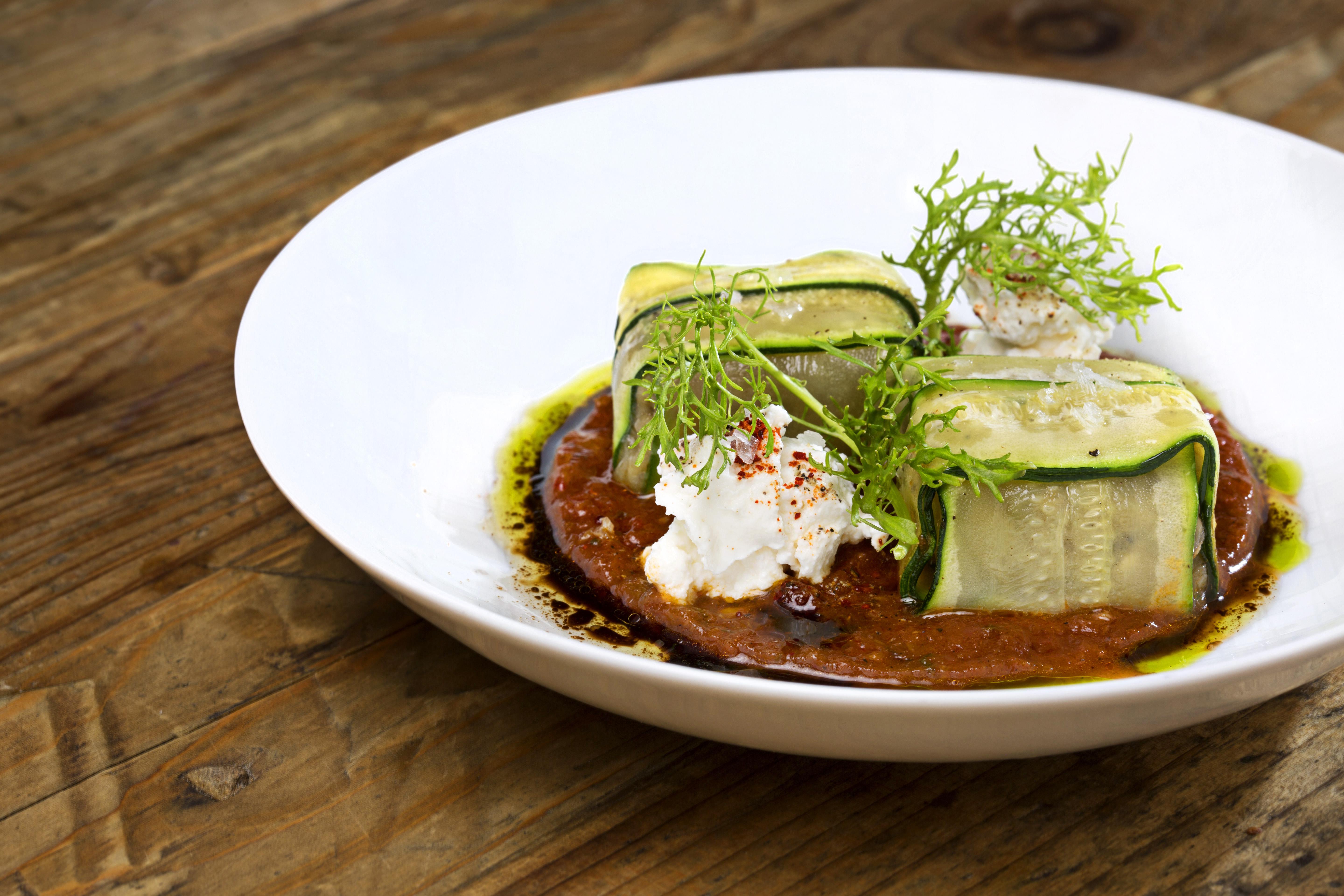 Las referencias están cerradas pero puedes publicar un comentario. Ravioli vegetal de calabacín y berenjena , escalivada, ricotta y salsa